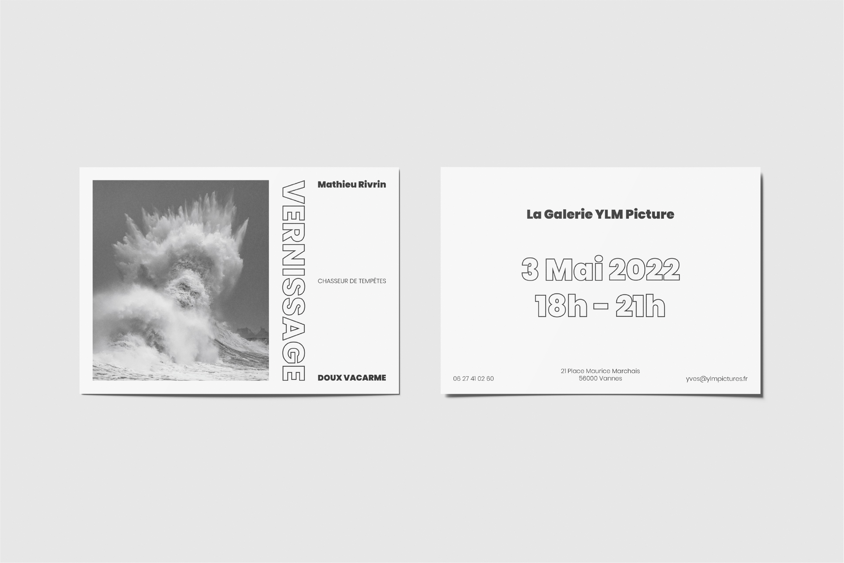 Édition du livre de photos de Mathieu Rivrin et design d'un flyer et d'une affiche pour son vernissage.